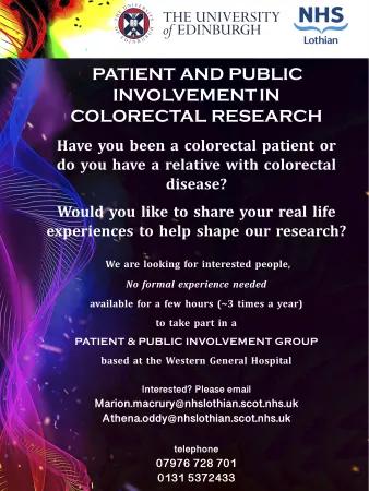 We are the leading investigating centre of ALLEGRO study. We also take part in other nationally and internationally run projects and have an active PPI group, helping inform our research direction and delivery. National Clinical StudiesALLEGRO – A placebo controlled rAndomised trial of intravenous Lidocaine in acceLErating Gastrointestinal Recovery after cOlorectal surgery: https://w3.abdn.ac.uk/hsru/ALLEGRO/Public/Public/index.cshtml CIPHER – UK Cohort study to Investigate the prevention of Parastomal Hernia:They don’t really have a dedicated patient facing website, but said this link was appropriate for patients http://cteu.bris.ac.uk/our-studies/?trialType=General-surgery CREST2 – Uncovered Vs covered endoluminal stenting:https://www.birmingham.ac.uk/research/activity/mds/trials/bctu/trials/coloproctology/crest2/participants/index.aspx PITSTOP – PIlonidal sinus Treatment: STudying the Options:They have a few options and are happy for patients to access their Twitter feed - @PITSTOP_StudyWebsite: https://www.sheffield.ac.uk/scharr/sections/dts/ctru/pitstopYoutube video of the study: https://www.youtube.com/watch?v=jpgo_cJWxVg&t=462s PREPARE ABC - SupPoRtive Exercise Programmes for Accelerating REcovery after major ABdominal Cancer surgery: http://www.uea.ac.uk/prepare-abc/homeIn addition, we have active and large portofolio of international collaborative studies and local audits with regular presentations at local, national and international conferences. LOCAL PPI GROUPWe have an active PPI group who have helped develop some of our recent research projects and grant applications. PPI advert This article was published on 2024-02-06